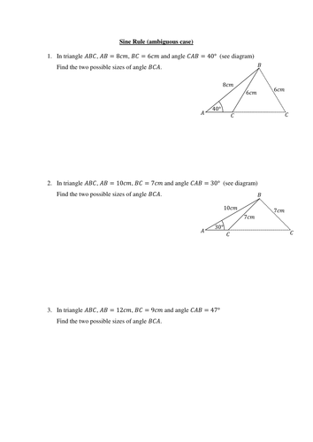 Law of Cosines and Sines Worksheet (11) Derive Projection formula from (i) Law of sines, (ii) Law of cosines. Trigonometry Word Problems Worksheet with Answers. Jan 09, 22 08:23 AM. The Law of Sines | Sometimes There Are Two Answers ! The Law of Sines (or Sine Rule ) is very useful for solving triangles: asin A = bsin B = csin C. The answers are almost the same! (They would be exactly the same if we used perfect accuracy). So now you can see that