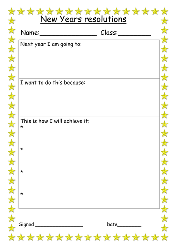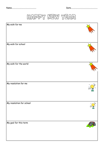 Free New Year's Resolutions Worksheets for Kids Printable ... Our New Year's Resolutions Worksheet is a fun way to teach your students all about the importance of planning and making your goals a reality. Begin the start of a new year with our New Year's resolution worksheet and talk about reflections and last year challenges. Make a fresh start and organize new year goals.