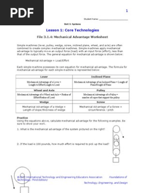 Simple machines and mechanical advantage worksheet answer key