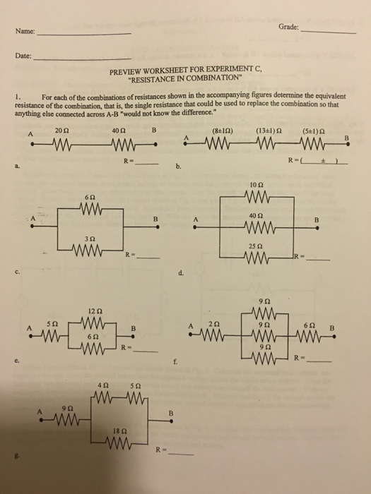 Equivalent Resistance Worksheet 21 IL - StudyLib Equivalent Resistance Worksheet Name: . 1 Three resistors with values of 3.0 0, 6.0 0, and 12 0 are connected in series. What is the equivalent resistance ...