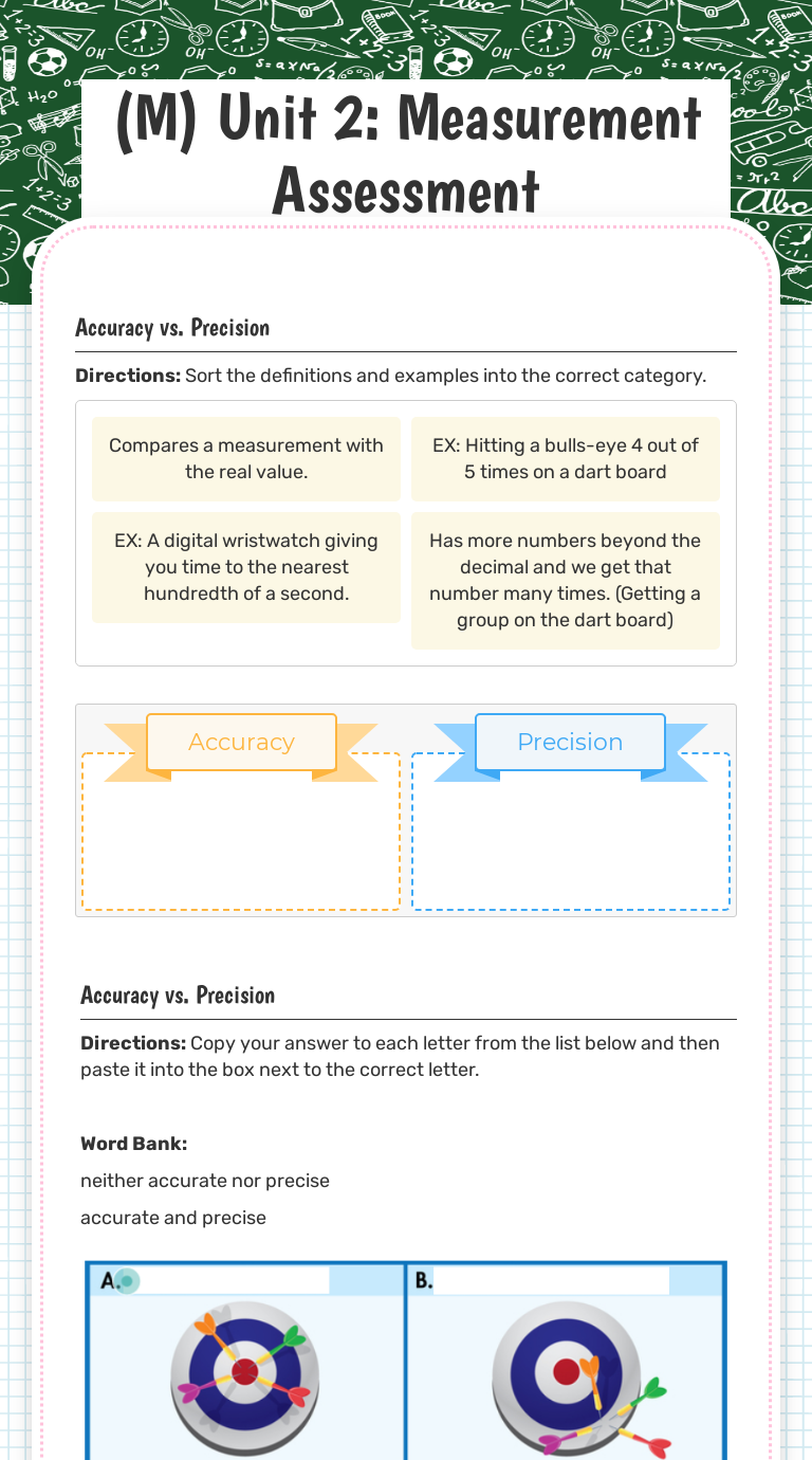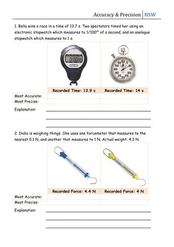 PDF Microsoft Word - Worksheet-Accuracy and Precision-Final.doc Accuracy and precision. Definitions: Accuracy - how close a measurement is Science, Measurement, and Uncertainty: Accuracy and Precision. A second group of students obtained the Justify your answer. Expressing Errors in Measurement: Scientists often express their uncertainty and...