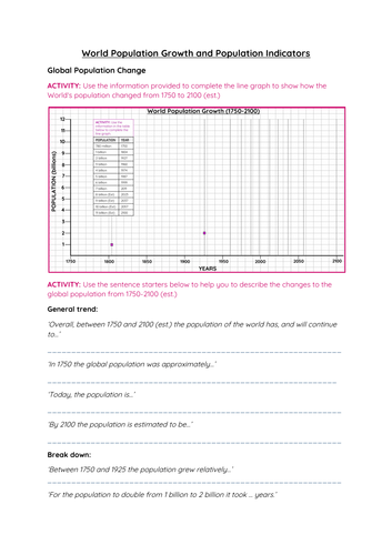 Population Growth [Worksheet & Answer Key] by Teacher In the Six The following worksheet reviews population growth. Factors contributing to population growth are reviewed. The formula is reviewed, requiring students to calculate population growth. Understanding of population histograms is also required.This worksheet is made as a follow-up to the following powerp... Population Growth [Worksheet & Answer Key]