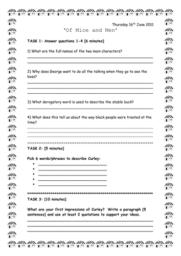 Of mice and men worksheet