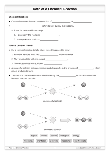 Rates of chemical reactions worksheet. Lesson Worksheet:Rates of Reactions - Nagwa In this worksheet, we will practice describing the rate of a chemical reaction and explaining the effect the type of reagent and the surface area have on it ... Rates of reaction 2021 Royal Society of Chemistry. Rates of reaction | Supporting resources. Teacher notes. This resource supports the practical video Rates of reaction, ... Rates of Reactiion - Mr. Stewart's Physical Science A.5 - Students know chemical reactions can take place at different rates, depending on a variety of factors such as temperature ... Reaction rates worksheet ... Reaction Rates: - Science Buddies Directions: Answer the questions below in preparation for the experiment. Student worksheet. Reaction Rates: When Surface Area Matters!4 pages