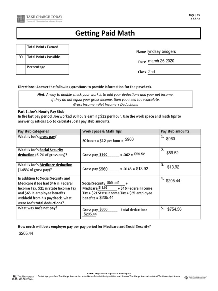 44 getting paid math worksheet answers