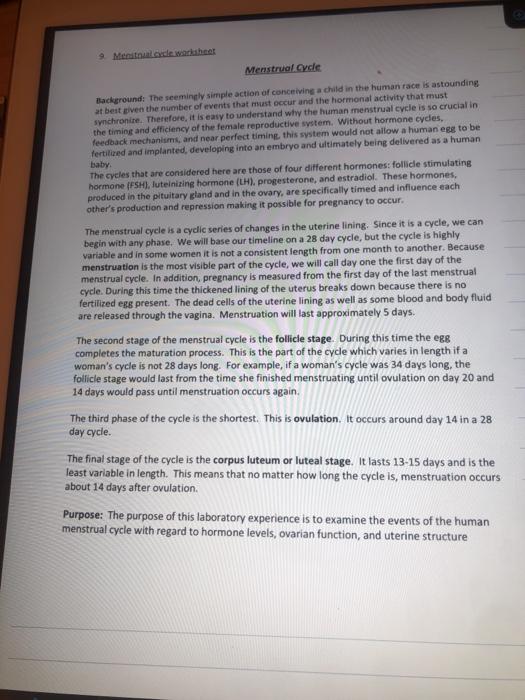 The menstrual cycle worksheet