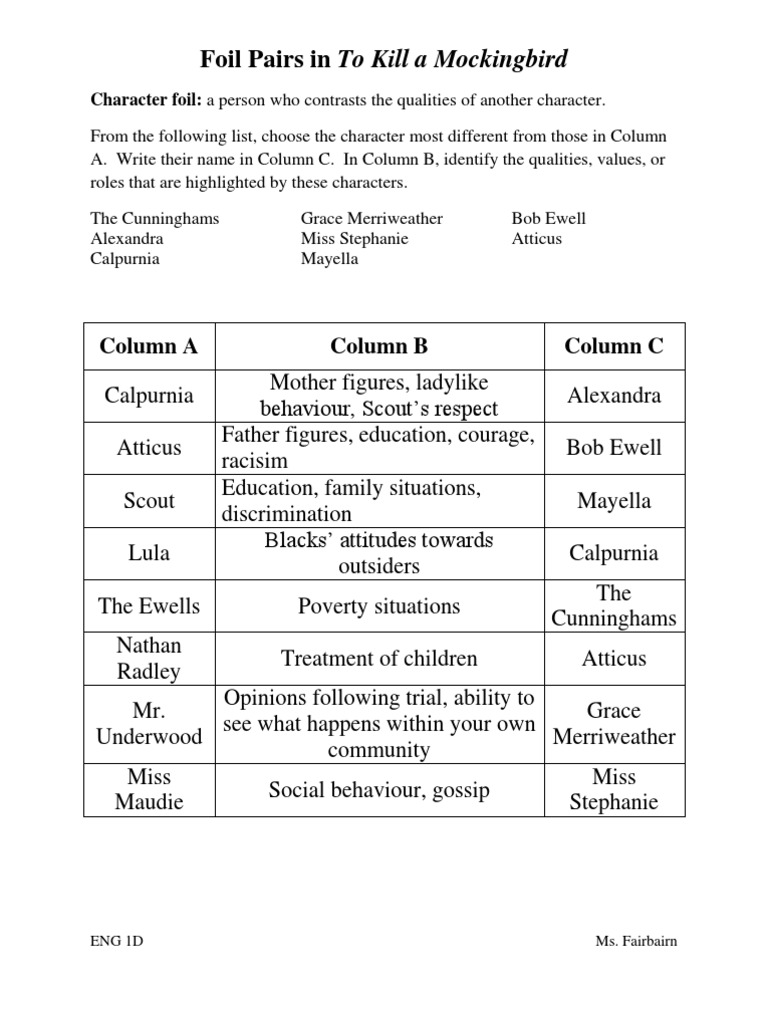 To kill a mockingbird worksheet