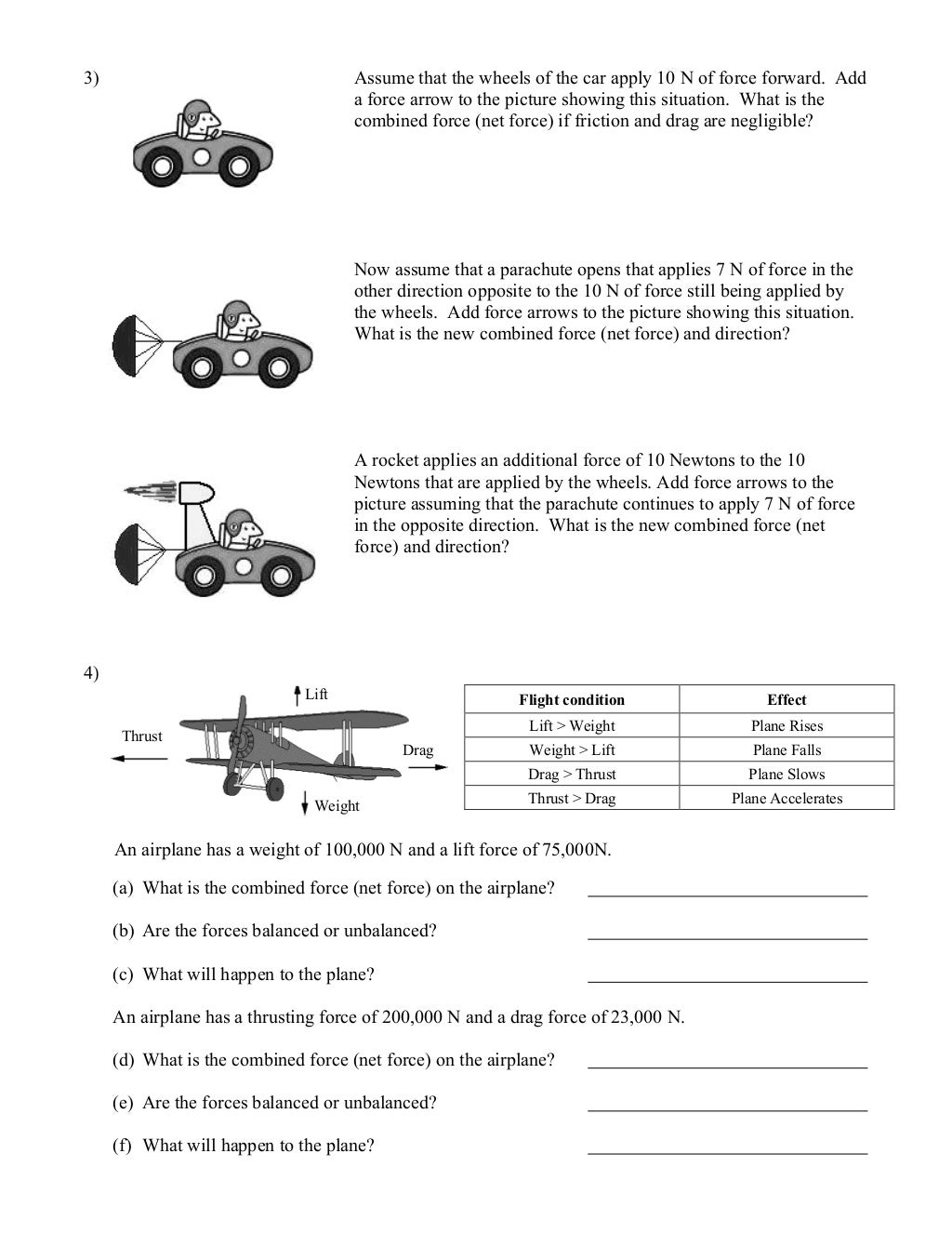Balanced and Unbalanced Forces Activity | Science Resources - Twinkl Use this handy Balanced and Unbalanced Forces Activity printable to cement and review your children's understanding of balanced and unbalanced forces in physics.Perfect for upper-grade science lessons, this worksheet challenges students to use previous learning to identify whether forces are balanced or unbalanced. Children will study six illustrations and decide whether the forces involved in ... Calculate Balanced And Unbalanced Forces - K12 Workbook Worksheets are Balanced and unbalanced forces work, Forces work 1, Lets investigate, Balanced unbalanced forces, Force and motion, Forces th grade science, Calculating net forces, There are different types of forces. *Click on Open button to open and print to worksheet. 1. Balanced and Unbalanced Forces Worksheet 2. Forces Worksheet 1 3. Balanced and Unbalanced Forces Worksheets | K5 Learning Balanced and Unbalanced Forces Actions and reactions Balanced forces cancel each other out; unbalanced forces result in movement (acceleration). These worksheets emphasize the relationship between unbalanced forces and movement. An experiment Worksheet #1 Draw examples Worksheet #2 Worksheet #3 Balanced or not? Worksheet #4 Does it move?
